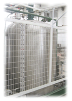 外形:6×2.5×2.8(M)重量:5.8T功率:47.5KW/380VAC1) 設(shè)備配置(生產(chǎn)能力為12T/h)①、一套由容量為3m3的2個不銹鋼乳液罐和1個碳鋼瀝青罐組成的配料系統(tǒng),具有自動恒溫及攪拌功能,2個乳液罐交替使用保證了生產(chǎn)的連續(xù)性,1個保溫夾套瀝青泵自動向瀝青配料罐中添加基質(zhì)瀝青。②、一套由進(jìn)口耐酸乳液泵及各功能閥門組成的乳液出料系統(tǒng),全部由不銹鋼材質(zhì)制成,適應(yīng)各類乳化瀝青生產(chǎn)所需的酸度。③、一套由夾套保溫瀝青泵及各功能閥門組成的瀝青出料系統(tǒng),全部采用夾套保溫方式制成,為設(shè)備冷機(jī)啟動和疏通管道提供了便利性。④、一套由預(yù)混器及本公司自行研制生產(chǎn)的JM-18膠體磨組成的混合系統(tǒng),同時具有混合、剪切、碾磨及攪拌功能,有效地確保了成品各項指標(biāo)的合格性。不僅能乳化普通石油瀝青,更能乳化SBS含量較高的改性瀝青。⑤、可選配加水預(yù)熱器 ,確保冷水的快速升溫。⑥、可選配成品換熱器,達(dá)到成品低溫儲存,提高了成品的穩(wěn)定性。2) 操作控制系統(tǒng)(總功率47.5KW)①、一套由PT100傳感器、溫控儀表及電動閥門組成的各罐溫度自動控制系統(tǒng),精確地保證了生產(chǎn)所需的溫度值,更提高了設(shè)備的操控性。②、一套由BTB2重量傳感器及儀表組成的各罐液位系統(tǒng),不僅實時顯示了各罐的實時液位,而且為設(shè)備自動配比生產(chǎn)提供了精確的數(shù)據(jù)源。③、設(shè)備管路及出口的壓力表實時地顯示了設(shè)備工作過程中的壓力值,為客戶操控設(shè)備提供了可靠的便利性。④、一套由TFT真彩觸摸屏及西門子PLC組成的自動生產(chǎn)配比及操控系統(tǒng),提高了設(shè)備生產(chǎn)配比的精確度及穩(wěn)定性。⑤、一套由PLC檢測并提供信號的實時故障報警指示系統(tǒng),精確地提示了設(shè)備故障報警的位置及原因。⑥、設(shè)備同時具有自動、手動兩套獨(dú)立的控制系統(tǒng)供用戶自由選擇,全方位地滿足了不同狀態(tài)下的生產(chǎn)要求。